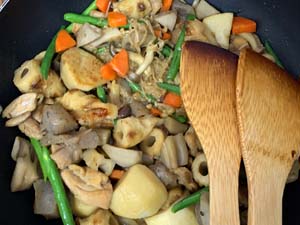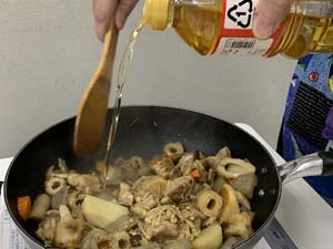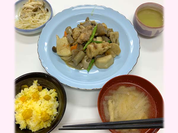 黄色いご飯がほっこりとします。筑前煮は、たくさんの材料が入り、栄養価が高いメニューとなりました。