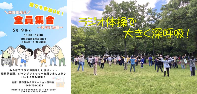 ラジオ体操から始まり、季節の先取り相模原音頭を踊り、みんな大好きジャンボリミッキーを楽しくダンスをして、○×クイズは参加事業所にまつわる問題が出され みなさん一生懸命クイズを考え楽しみました。